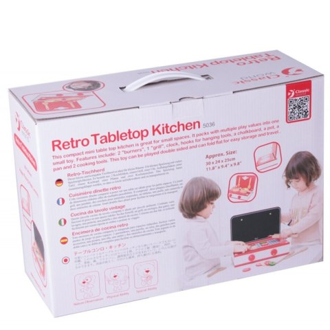 Czy masz w domu początkującego mistrza kuchni? A może maluch po prostu chce naśladować mamę i tatę? Tak czy inaczej, kuchnia stołowa Classic World zawiera wszystko, czego potrzeba do przygotowania posiłku. Jaskrawoczerwony kolor tej kuchenki spodoba się wszystkim dzieciom, ponieważ w zestawie mamy garnki i patelnie, a także „gotowe" jedzenie. Nasza pociecha przygotuje posiłek w mgnieniu oka. Oprócz garnków, patelni, sztućców i jedzenia, jest też zestaw patyczków do nabijania jedzenia, a wszystkie kawałki jedzenia mają otwory w środku.