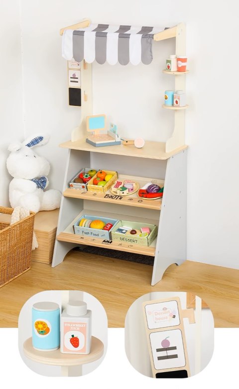 Podaruj swojemu dziecku możliwość rozwijania wyobraźni i umiejętności społecznych poprzez zabawę w sklep. Drewniany stragan to idealny wybór na prezent, który łączy naukę z radością! Zamów już dziś i ciesz się kreatywną zabawą w Twoim domu.