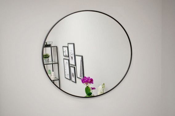 Lustro osadzone jest w metalowej ramie malowanej proszkowo na czarno, co nadaje mu nowoczesny, industrialny charakter, a jednocześnie zapewnia trwałość i estetyczny wygląd przez długi czas. Rama jest łatwa w utrzymaniu czystości — wystarczy przetrzeć ją wilgotną ściereczką.