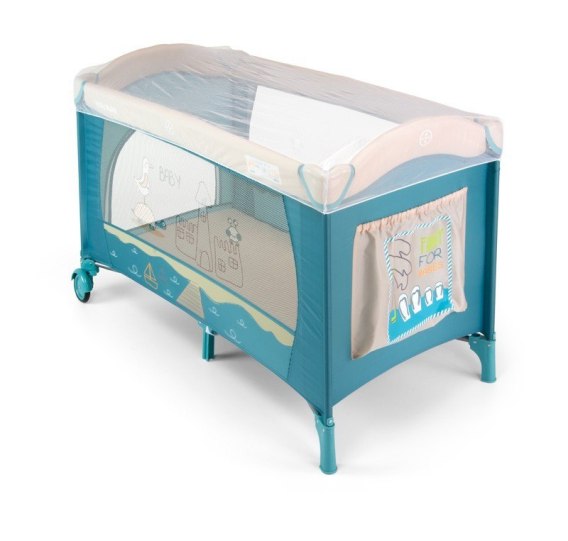 Moskitiera została estetycznie wykończonaozdobną lamówką, dzięki czemu prezentuje się schludnie i elegancko. Mocowanie naelastyczną gumkęsprawia, że zakładanie i zdejmowanie jest szybkie i wygodne, a materiał dobrze dopasowuje się do kojca o wymiarach120 × 60 cm, nie zsuwając się podczas użytkowania.