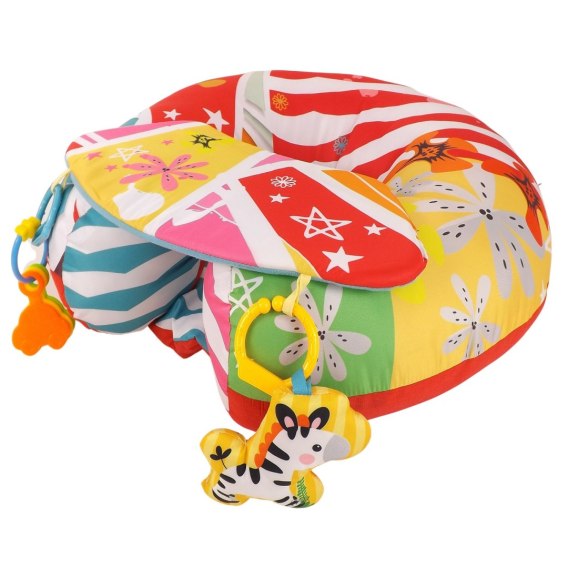 Poduszka już na pierwszy rzut oka robi super wrażenie, jest masywna, duża, solidna. Na spodzie wmontowana jest lekko ocieplona podłoga, aby dziecko nie musiało siadać bezpośrednio na ziemi. Od spodu poduszka i podłoga mają odporny na zabrudzenia materiał, łatwo ją również czyścić. Ponadto posiada piękną, żywą kolorystykę, która bardzo zainteresuje Twoje dziecko.