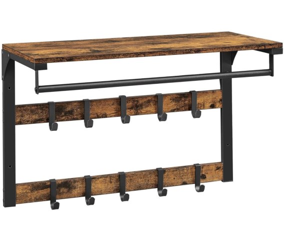 Półka Wisząca Loft Z Wieszakami Rustykalny Brąz Oskar