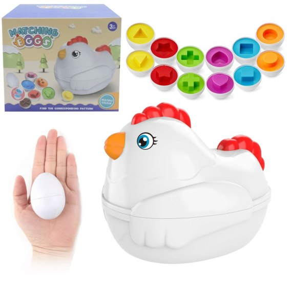 Sorter Jajka Montessori – Dopasuj Kształty I Kolory, Kura Na Kółkach