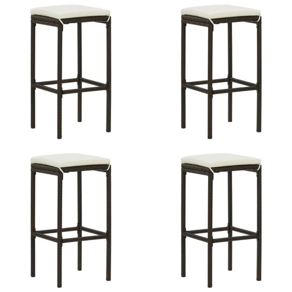 Zestaw 4 Stołków Barowych Rattan PE Brązowy – Poduszki, Stalowa Rama, 38x38x76 Cm