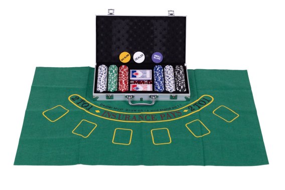 Zestaw do pokera/blackjack ModernHome – 300 żetonów, mata, walizka, kości.